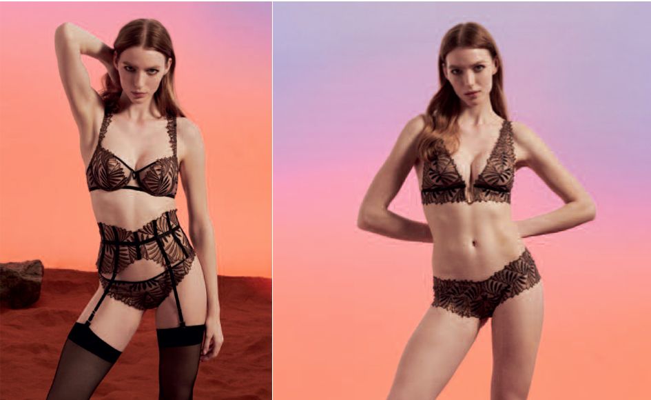 Named "Sensory Illusion", the collection plunges us into a magical botanical world where the body’s movements mirror those of nature and where the embroidery of swirling leaves become mystical ornaments decorating the female body. The line is available in two complementary colors: "Golden Leaves", a hypnotic contrast between bronze foliage and graphic black lines, and "Silk Rose", a seductive mix of iridescent tones ranging from pale to antique pink. The Iris Van Herpen x Aubade capsule consists of ten pieces in total: a wireless triangle bralette, underwired triangle bra, plunging padded bra and half cup bra, all with matching tanga, an Italian brief or a St. Tropez shorty all-over lace shorty. Rounding up the collection are a bodysuit, a nightie and seductive high-waist suspender belt. The Iris Van Herpen x Aubade collection will be available in a selection of partner multi-brand stores, in Aubade stores and on the brand's online store as of June 2022.
