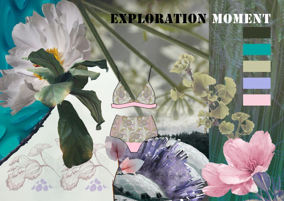 -EXPLORATION MOMENT: A DESIRE FOR ADVENTURE, TO EXPLORE, TO DELVE INTO WHAT FASCINATES US, NATURE. THE MOVEMENT OF LEAVES, THE FRAGILITY OF PETALS, THE BEAUTY OF NATURE'S EXPRESSION IN ALL ITS PHASES FROM ITS ORIGINS. THE RANGE OF COLOURS INCLUDES MAGICAL GREENS WITH LUMINOUS TOUCHES OF FLOWERS.