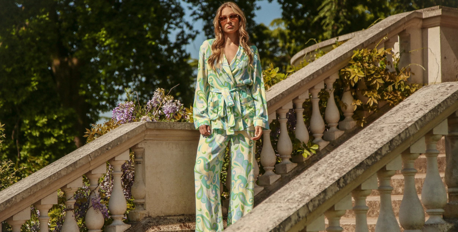 Through her loungewear collections but also cotton and linen nightwear and vacation pieces, the designer aims to offer wearers a sense of escapism and joy, transforming everyday dressing into something truly uplifting, while investing in premium fabrics and timeless cuts, from beach to bar to bed! At the heart of this vision lies the Smoking Suit — a daring and refined reimagining of leisurewear that has not only captured the attention of fashion insiders but is fast becoming a cultural icon in its own right. Made from elegant viscose, with its tailored fit, flattering drape, and playful prints, the brand’s stand-out piece transcends the traditional boundaries of loungewear, catering to the growing demand for high-quality, versatile fashion.