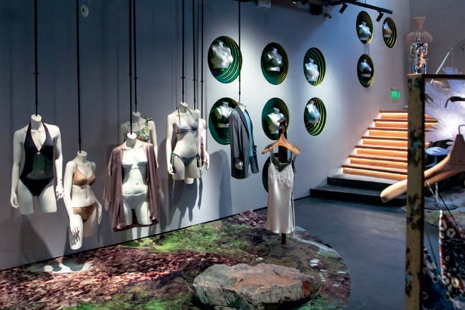 Owner and founder of the boutique6 located in Shanghai, Christy Liang, shared that the 2020 world events served as inspiration for the space’s decor, the renewal of the plants after the fires in Australia, or the blooming cherry blossoms following the outbreak of the pandemic in Wuhan. Throughout the store, Liang wanted to show the cohabitation between humans and nature – with nature being the more powerful of the two. Along a wall, the “15+1” art project is displayed: 16, 3D models of bodies are exhibited. These 3D models were made using scanned images of the bodies of their first employee and those of 15 VIP customers. Each unique, each equally as beautiful as the last, not only are the real bodies stunning, they also serve to represent the relationship between Atelier Intimo and their customers.