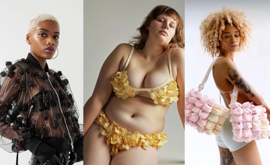 The “Food fashion” project is a highly impactful series creating visually compelling garments in a fascinating balance of what is ordinary and yet very extraordinary due to the combinations used: a lavish party dress made of peeled bananas, blueberry swimwear, sugar eggs lingerie, a raspberries and cream jacket… Bonny's take on fashion breaks boundaries, transforming nature through technology… In his own words: “Nature is an endless pool of design possibilities. AI helps me to playfully abstract these shapes and translate them into completely new silhouettes.”
