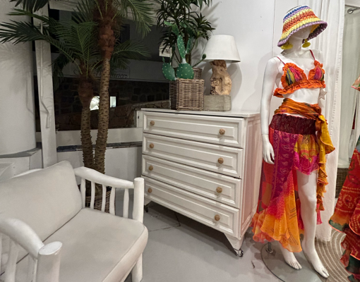 Music, champagne, cozy lounges and customized service make shopping here an experience where vacation becomes a lifestyle. To Antonio, every guest, whether a regular or a first-timer, is a VIP, receiving a true taste of the art de vivre. Even celebrities like Beyoncé, Katy Perry, Angelina Jolie, and David Beckham have rediscovered the joy of “vacation shopping” at Buganville. Just for themselves, for the simple pleasure of it. A moment of total escape.