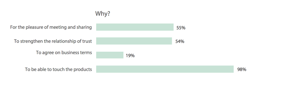 When asked to specify the reasons for their answer we assessed that almost to unanimity the main reason was to be able to touch the products. Respondents, who could specify multiple answers, also stressed the social aspect of in person sampling with 44% indicating it was the pleasure of meeting and sharing that was important to them and 43% considering it was useful to strengthen the relation of trust established with vendors. Of our survey panel 15% also believe in person sampling is helpful when it comes to agreeing on business terms. With unity and collaboration being key words in these complex and unpredictable times, the survey definitely conveyed good team work was being carried out between stores and brands, with practical mutual support being provided where possible and the overall propensity on both sides to find ways of meeting each other half way.
