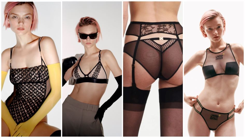 Metallx in Leavers lace, with intertwined link pattern and adorned with golden studs; Traxx with ethnic-inspired embroidery, for a sculptural and avant-garde look; Txture playing with the juxtaposition of Leavers lace, adorned with jewels, and X Edition with original patterns, message embroidery and fluorescentlines, inspired by streetwear.