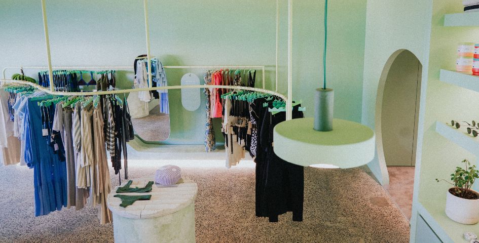 The custom hangers are made from recycled plastic and the fitting rooms