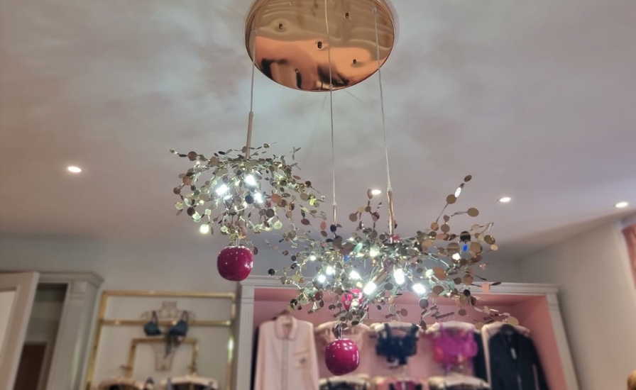 We love: the shimmering apples overhead, small magical details that give the boutique a fairytale glow, reminding visitors that luxury can be both intimate and enchanting.