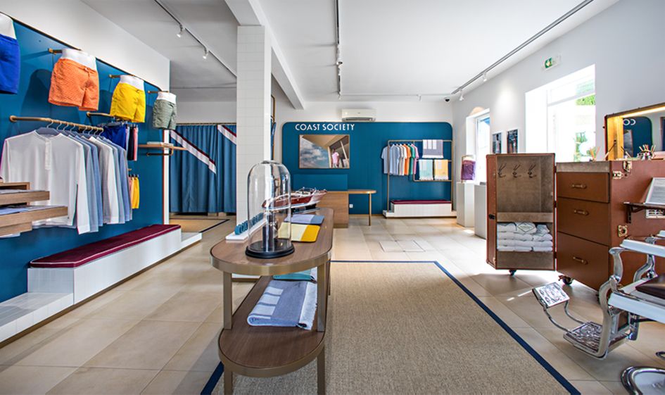 Founded in Milan by Davide Jais, 2017’s Talent de Intima winner Coast Society incarnates the masculine ideal of contemporary leisure, offering collections dedicated to the art of the vacation. While the brand’s signature piece is still the swimsuit, the collection has been expanded over the seasons so that now polo shirts, towels, shirts, junior swimsuits and a capsule eyewear collection are now part of Cost Society’s chic world, all in its monobrand boutique, which opened last spring. We love the store’s timeless elegance that is a perfect reflection of the brand’s DNA. Nestled between the Place des Lices and the port, the store, decorated in shades of white and blue, welcomes St Tropez’s full-time residents as well as those just passing through. Alongside the brand’s collections and a selection of indispensable objects for the modern traveler, you can also find Barberino’s, one of Milan’s authentic barbers! In this corner of the store, men are able to have their beard trimmed or cut their hair, taking a moment to relax via one of the most traditional male rituals. Another of the store’s highlights is its magnificent terrace-lounge with designer Driade furniture where customers can relax in the sun. The whole store is a work of art, developed by Parisian architectural firm Tenzing.