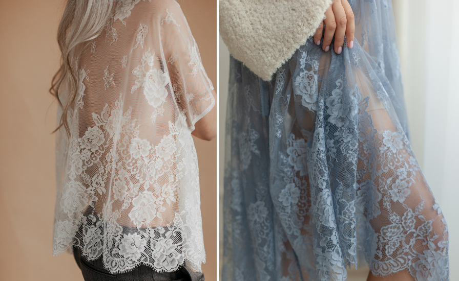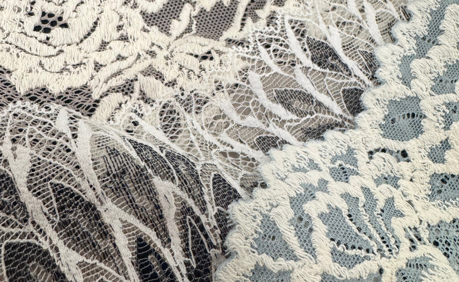 Today, cotton is no longer synonymous with everyday basics; it has become a powerful storytelling vehicle. Brands and suppliers alike use it to build narratives of heritage and craftsmanship, in which the fabric carries meaning as well as value. Chanty Lace, for instance, has made cotton one of the pillars of its identity: its laces containing up to 69% cotton claim a form of discreet luxury based on authenticity, stability, and longevity. The promise of lace that does not shrink, lose shape, or lose softness after repeated washing reinforces a message of lasting quality. Sivalace stands out for taking a creative, narrative approach, revisiting the codes of historical merletti through collections in which cotton is expressed in vintage-inspired borders and allovers. Color palettes range from natural tones to sorbet shades, from ecru to powder pink, from soft sky blue to more vibrant hues.