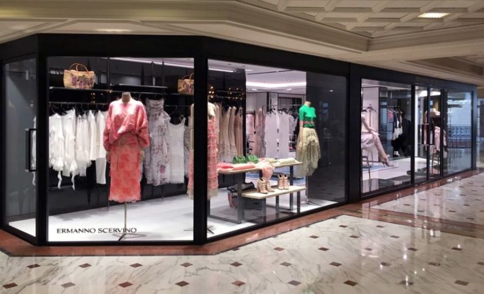 The store, characterized by four large windows, covers an area of over 1291 sq. ft. and houses prêt-à-porter collections, lingerie and women's accessories.