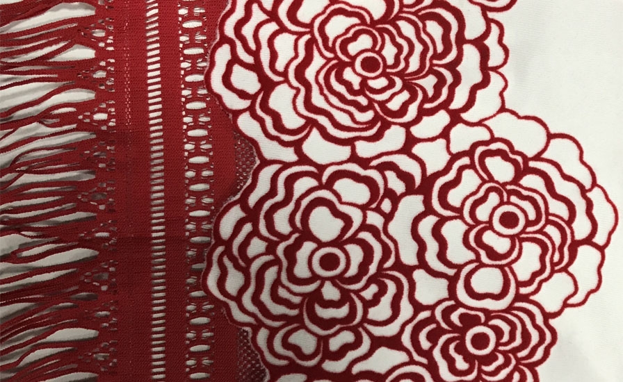 dyed multicolored effect yarns. Last but not least, flocked designs,