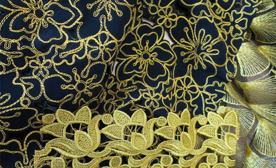 Junior introduces biologically-based embroidery made with Evo by Fulgar bio-polymer: a choice that fits within the company's broad green commitment, focused on finding sustainable materials and the use of alternative energy sources to reduce consumption. These high-impact items are created with fluorescent polyester yarns, which change color depending on the light and offer unique brightness effects, especially at night. Junior is also pursuing research in laser designs, achieved with contrasting fabrics (such as fishnet and bronze leather, velvet and macrame inserts) for new 3D effects.