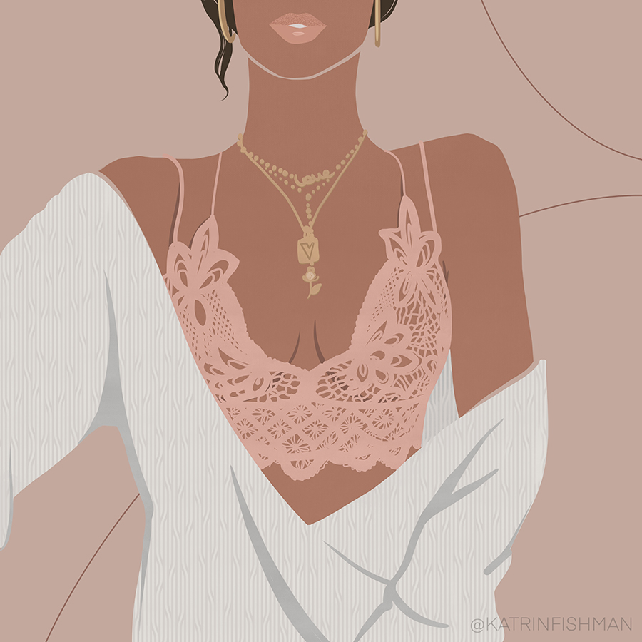After becoming pregnant with her some, she continued to evolve, creating custom-made commercial collections, to help companies translate their ideas, creating a unique and original underwear design. At the same time, she plunged into fashion illustration, where she tries to combine what she likes so much: art and underwear.
