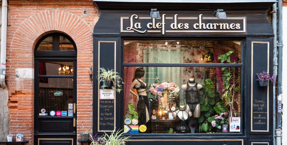 Founded in 2010 with the mission to challenge taboos, La Clef des Charmes has redefined the perception of sexuality, blending glamour, inclusivity, and a liberated spirit. The boutique invites individuals to explore their desires and achieve personal fulfillment, all within a sophisticated and curated environment. This one-of-a-kind Toulouse destination offers personalized guidance for those venturing into sensual experiences with confidence. Upon entering, visitors find two distinct areas: the first features a carefully curated selection of lingerie for women, men, and unisex preferences, alongside an enticing range of erotic cosmetics and daring games. The second area of the boutique offers a more intimate setting, dedicated to playful accessories designed for uninhibited pleasure. Each item is carefully selected to create a sensory experience that transcends clichés and stereotypes. The shop’s decor beautifully preserves the authentic charm of Toulouse, with its 1940s façade, exposed beams, red brick walls, and traditional terracotta tiles. Inside, a warm and inviting atmosphere is created through a blend of pink, black, and gold tones.