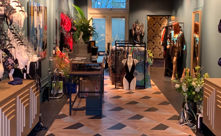 Founded in 1994 by Jet van Beek, a former hairdresser driven by a deep passion for fashion and the female body, the brand was born from a life-changing moment which became a fully realized entrepreneurial project. With a retail space of 807 ft², the boutique unfolds like a felt cocoon, designed to slow down time and encourage interaction. From the moment you step inside, the atmosphere gently envelops you: Art Deco influences, touches of 'hotel chic,' controlled lighting, and carefully chosen furniture create a warm, almost domestic décor.