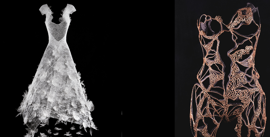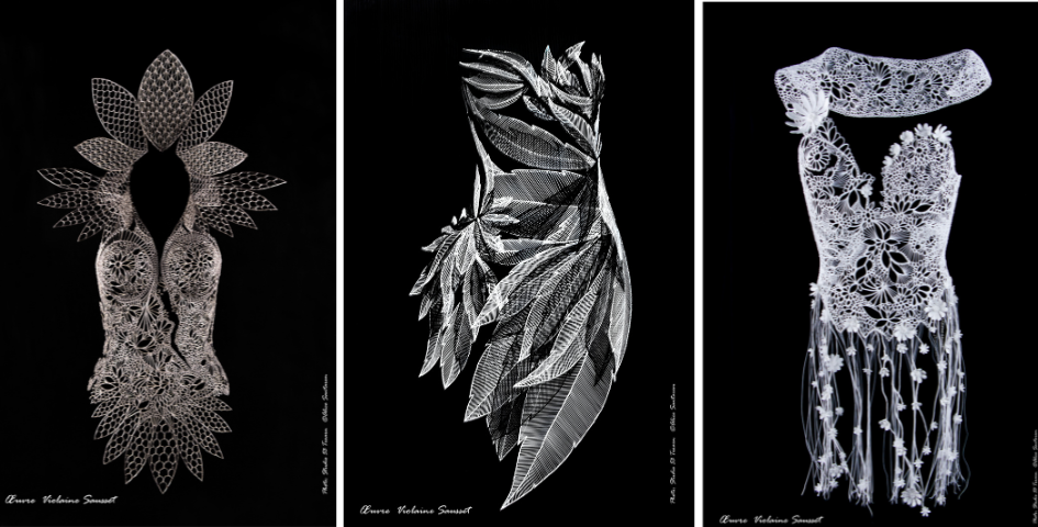 After starting out in the world of graphic design, Violaine Sausset discovered the 3D pen, and it was a revelation! Since then, she has devoted herself to sculpting with this simple and unique tool. Her work focuses on reinterpreting lace and the female silhouette, creating shapes that embellish the exterior to mask internal wounds.