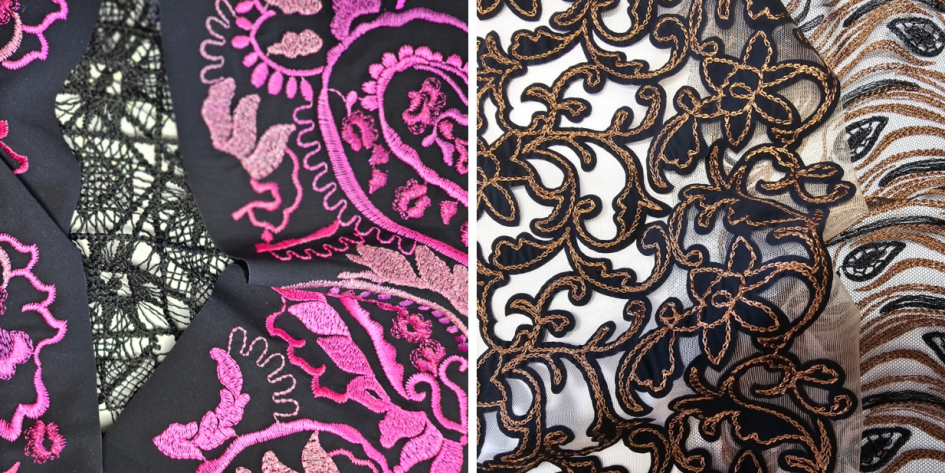 The collection features bold and vibrant embroidery on recycled tulle and macramé bases, creating high-impact technical fabrics designed for swimwear as well as lingerie designed to be revealed.