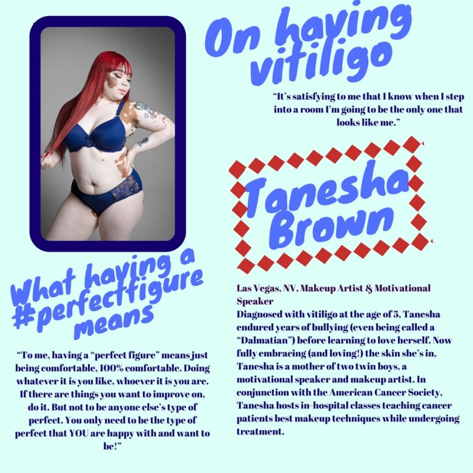 Featured above: Journalist and fashion blogger Amy Stretten is mixed race Native American from the Chickahominy Tribe of Virginia; Tanesha Brown (a.k.a. Vitiligo Queen) is a mother, makeup artist and motivational speaker living with vitiligo; Candice Kelly is a plus-size model, blogger and advocate, Tatiana A. Lee is an actress, model and lifestyle blogger living with spina bifida, Kelsey Rose is a mom-model-entrepreneur living with vitiligo; and Gloria is a vegan mom-model proudly navigating the modeling industry with visible stretch marks.