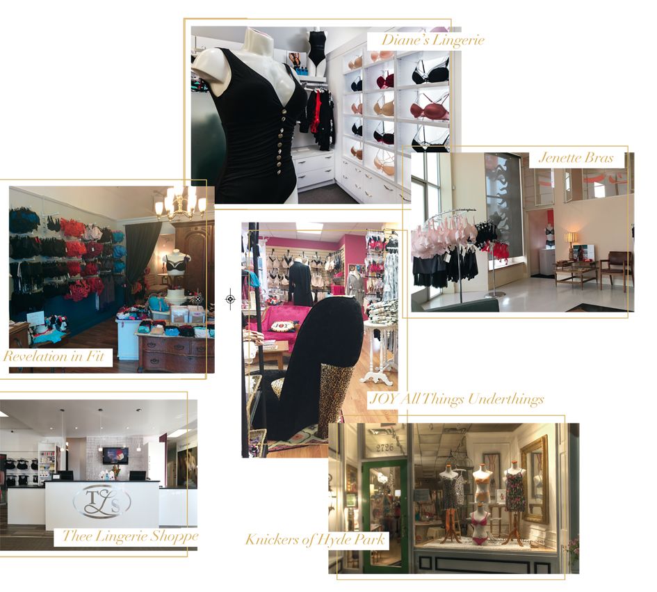 Stores in the Concept category show a strong theme, an attitude that brings together all the vital elements of the lingerie shopping experience – service, décor and product offering- to create an all-encompassing philosophy. The newly renovated Diane’s Lingerie has integrated its community into the very essence of the store itself, with body prints from their own customers adorning the walls in a series of vibrant colors. After all, it’s the customers who count! Jenette Bras is not just a lingerie store, its displays and windows are also a canvas for Jenette’s artist husband, Aaron. The relaxed feel of the store coupled with its dynamic artwork makes for a relaxing shopping experience with a dash of glamour. Through its store ambiance, JOY All Things Underthings manages to be simultaneously upscale and welcoming, with a glamorous atmosphere which allows customers from all demographics to relax and find pieces that are right for them. All of the beautiful pieces displayed in Knickers of Hyde Park seem absolutely at home alongside the traditional wooden furniture and the soft lighting. This tranquil, unrushed atmosphere is perfect for shopping for the perfect piece of lingerie! From its neo-Victorian furniture to its brass chandeliers, Revelation in Fit pulls out all the stops to create a luxurious, elegant shopping experience and owner Robynne Winchester’s career history in corsetiere completes the package! Thee Lingerie Shoppe boasts a bright, beautiful space that customers will never want to leave. Perhaps that’s why it has stayed in the Bell family for three generations since being founded by Laurette Bell and her partner in 1979, with Laurette’s granddaughter recently opening a brand new branch!