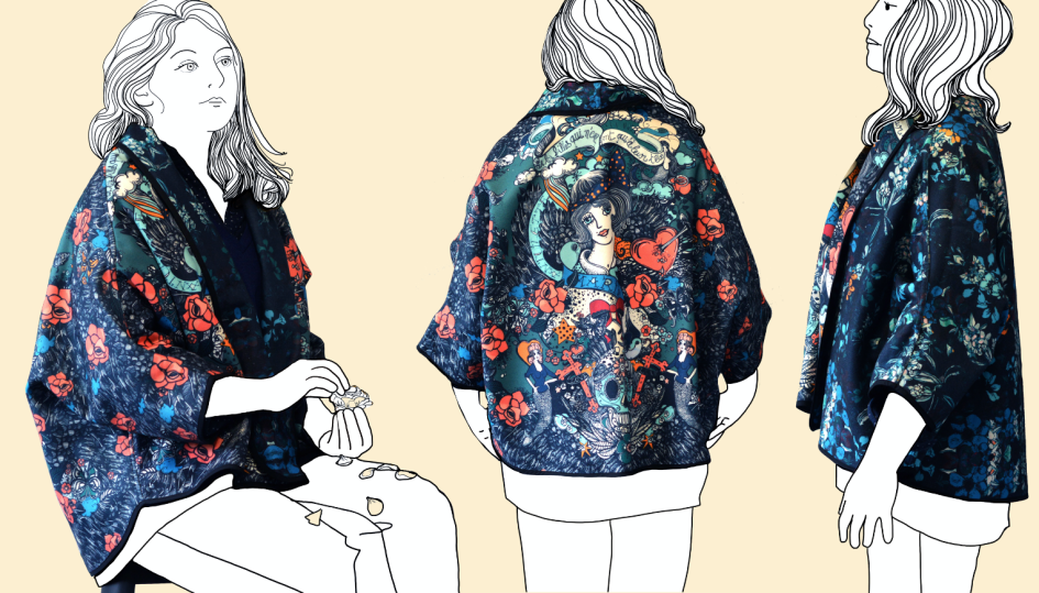 Marie-Antoilette is made for women in love with freedom, looking for a bit of madness in their daily lives and a strong original piece to boost their style. The designer Valérie Moënne observes the women around her, those met on the street or in the subway and imagines their universe: "Dressing is a way to show your tastes. When I draw, I translate for each model, a different feminine universe where everyone can recognize each other. I like the idea that a woman wearing a Marie-Antoilette kimono hums a nursery rhyme, an air of childhood". The new collection entitled" Let's walk us "is inspired by walks and getaways through Europe, but also a famous song learned during childhood.