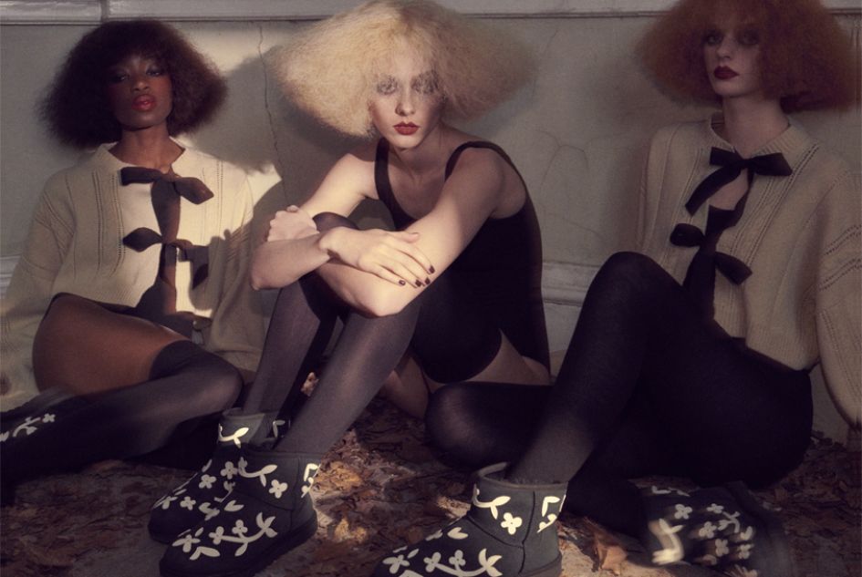 For Spring Summer 2021 UGG and Molly Goddard have partnered up to present a new collection launched by a captivating visual campaign styled by Alice Goddard. The campaign channels the bold aesthetic synonymous to the two brands and which can be found in the collection comprising of three footwear styles available in multiple colorways. Goddard applied her signature touches to the UGG x Molly Goddard Boot, adding floral appliqués to the brand’s renowned Classic Mini boot. The UGG x Molly Goddard Slipper introduces a bright element to the capsule with a vibrant pink and deep red curly sheepskin fluff and elegantly pointed toe while The UGG x Molly Goddard Platform is a playful fusion of colour, height and texture and is available in an array of vibrant hues.