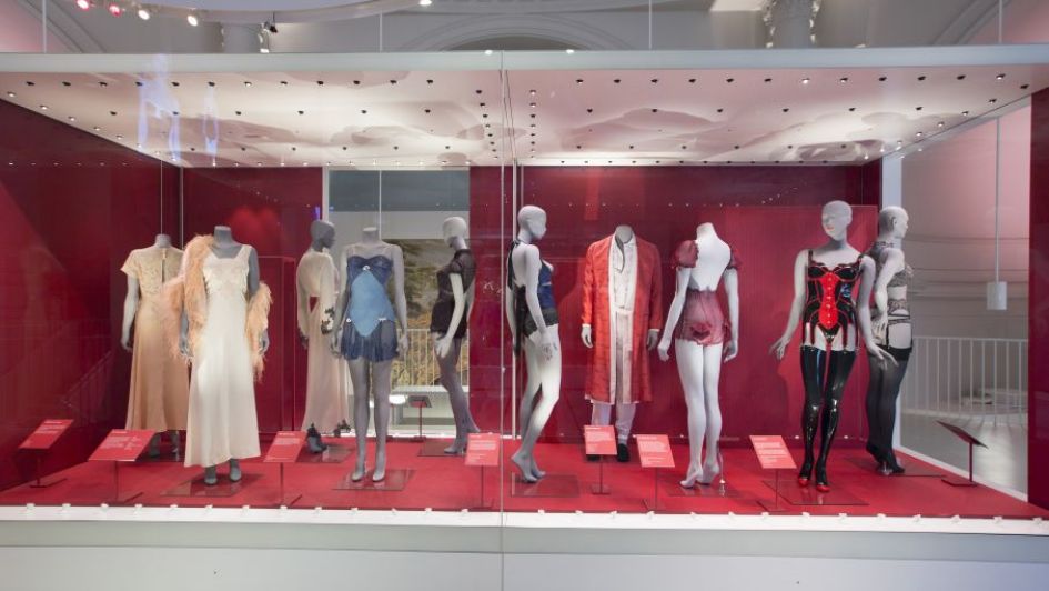 'Undressed' explores the relationship between underwear and fashion, the concept of the ideal body and the ways that the style, fit, and fabric can be used to explore issues of gender, sex, and morality. Focusing on complex themes such as health and hygiene, the exposition will address the design and technological advances central to the development of underwear. Corsets, crinolines, boxer shorts, bras, hosiery, lingerie, and loungewear will all be on display next to contextual fashion plates, photographs, advertisements, display figures and packaging. Many extremely rare pieces are on display and highlights include long cotton drawers worn by Queen Victoria's mother, an 1842 men's waist belt which would have traditionally been worn on the owner's wedding day, a 1960s Mary Quant body stocking, a pair of gender neutral briefs by Acne, a sheer dress by Liza Bruce which was made famous by Kate Moss, and flesh-colored leggings decorated with a mirrored glass fig leaf by Vivienne Westwood.